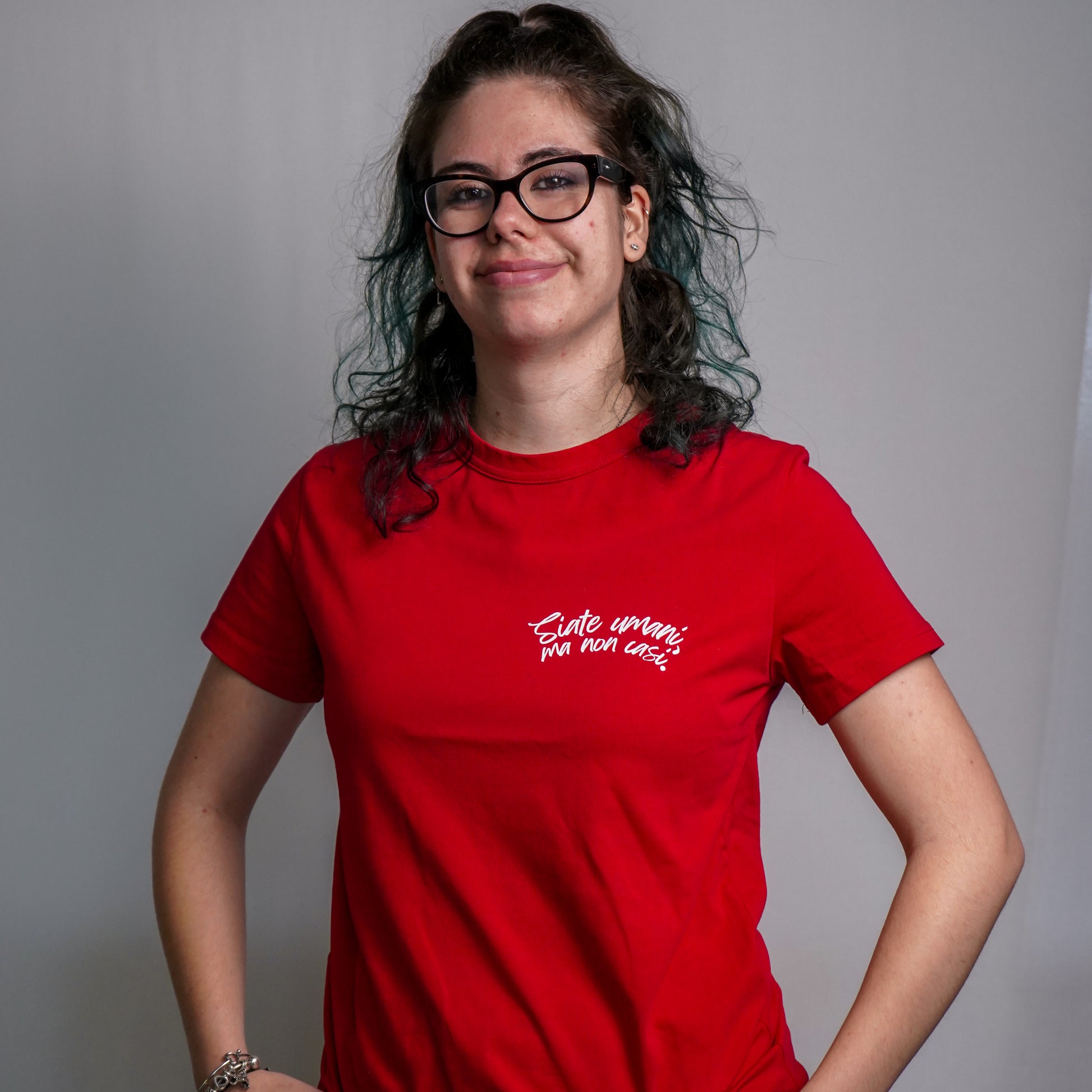 Questa t-shirt incarna un messaggio profondo di umanità e consapevolezza sociale. Con lo slogan "Siate umani non casi umani", il capo promuove un'etica di compassione e rispetto reciproco, invitando chi la indossa a riflettere sui valori fondamentali della dignità umana. Realizzata con attenzione ai dettagli, la maglietta combina comfort e significato, rendendola ideale per chi desidera esprimere il proprio impegno verso una società più consapevole e solidale. Un indumento che va oltre la moda, diventando strumento di comunicazione di principi universali.